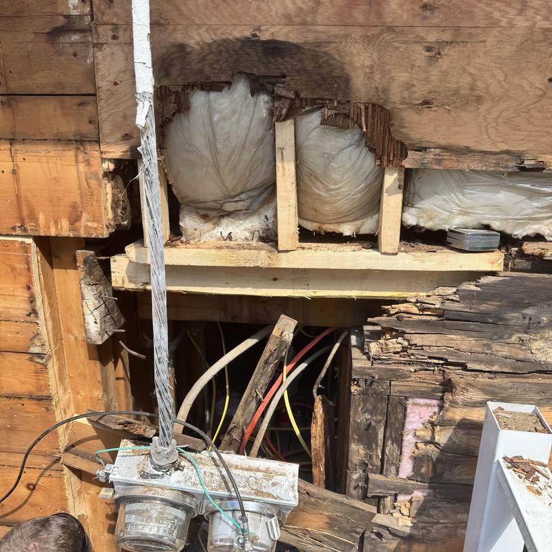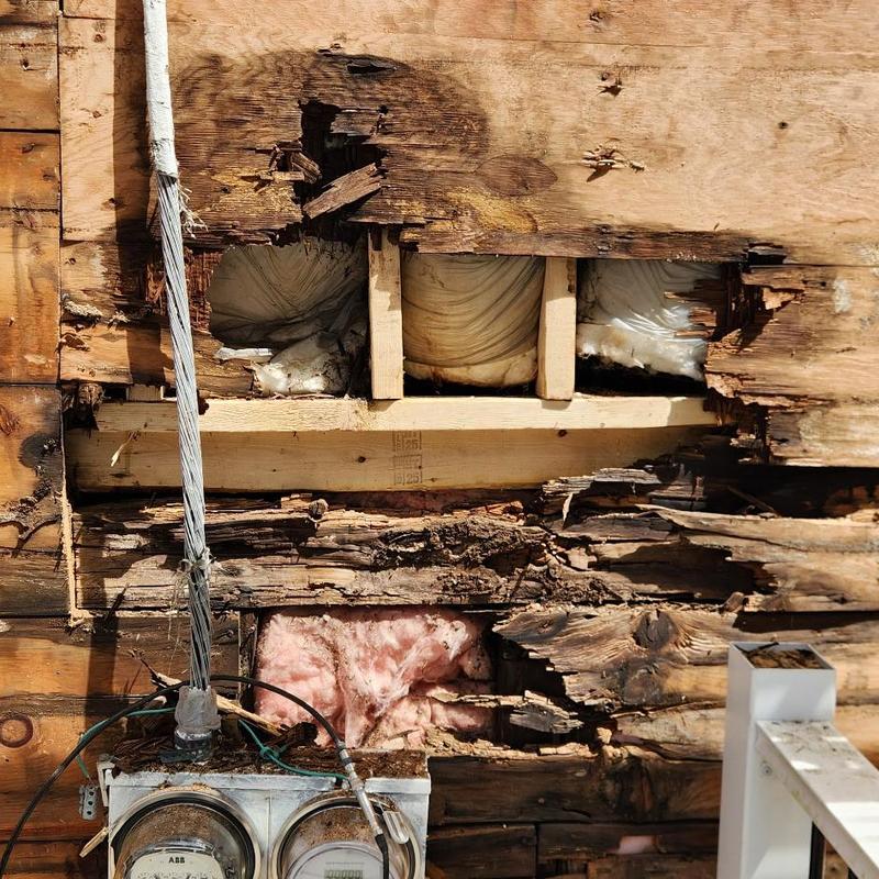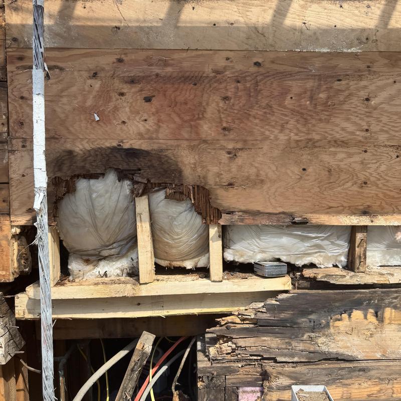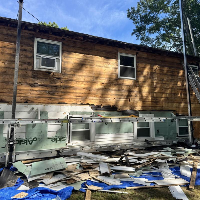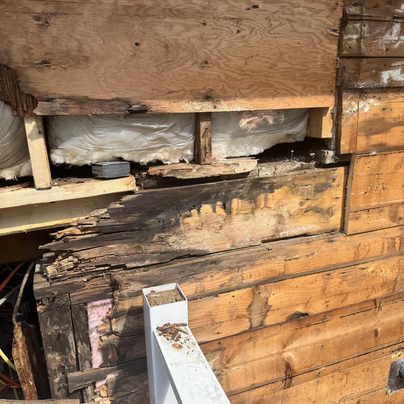 MC Design and Construction LLC removed exterior siding and found rotted boards in Randolph, Massachusetts. The team assessed the damage to support necessary structural repairs. This discovery highlights the importance of inspecting underlying materials during siding replacement or repair work.