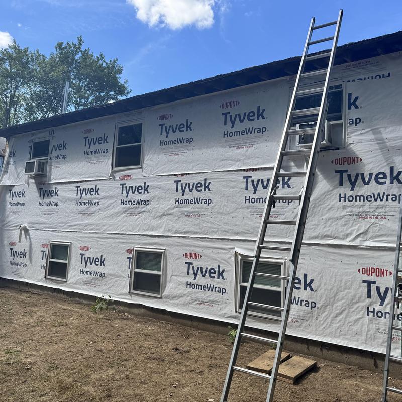 MC Design and Construction LLC removed old vinyl siding and installed house wrap and fanfold before adding new vinyl siding in Randolph, Massachusetts. The team replaced all trim boards, including fascia boards, with Azek PVC for improved durability and uniform appearance.