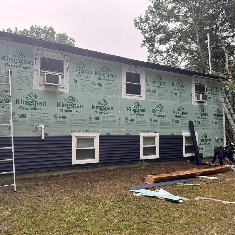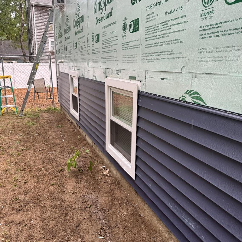 MC Design and Construction LLC removed existing siding in Brockton, Massachusetts, then installed house wrap and insulation board. The team added Royal Estate Vinyl Siding with Azek PVC trims and fascia boards to improve exterior protection and durability.