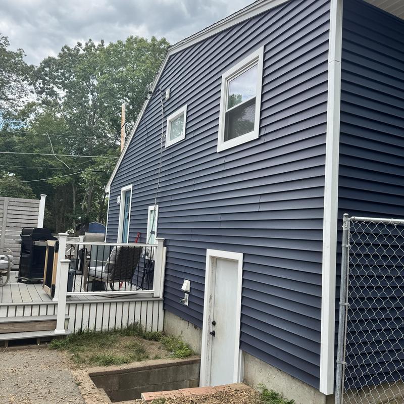 MC Design and Construction LLC installed new Royal Estate vinyl siding with Azek PVC trims in Brockton, Massachusetts. The team replaced exterior materials to improve weather resistance and building performance using durable and low-maintenance products.