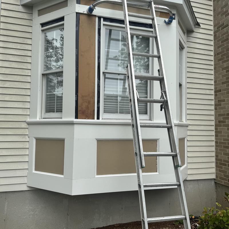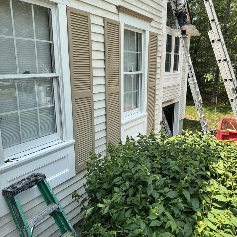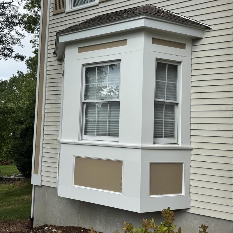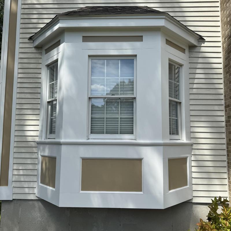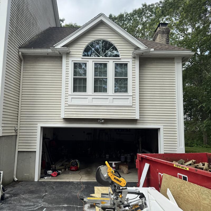 MC Design and Construction LLC removed all wood trim from windows, doors, and fascia boards in Andover, Massachusetts. The team installed new Azek PVC trim and will paint it to match the original color. New gutters will also be added to complete the exterior update.