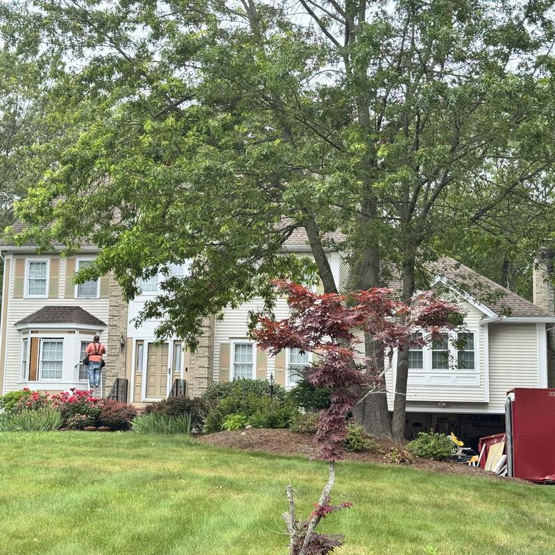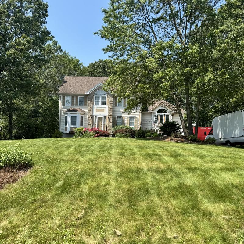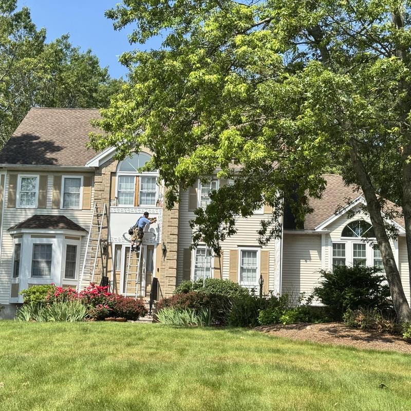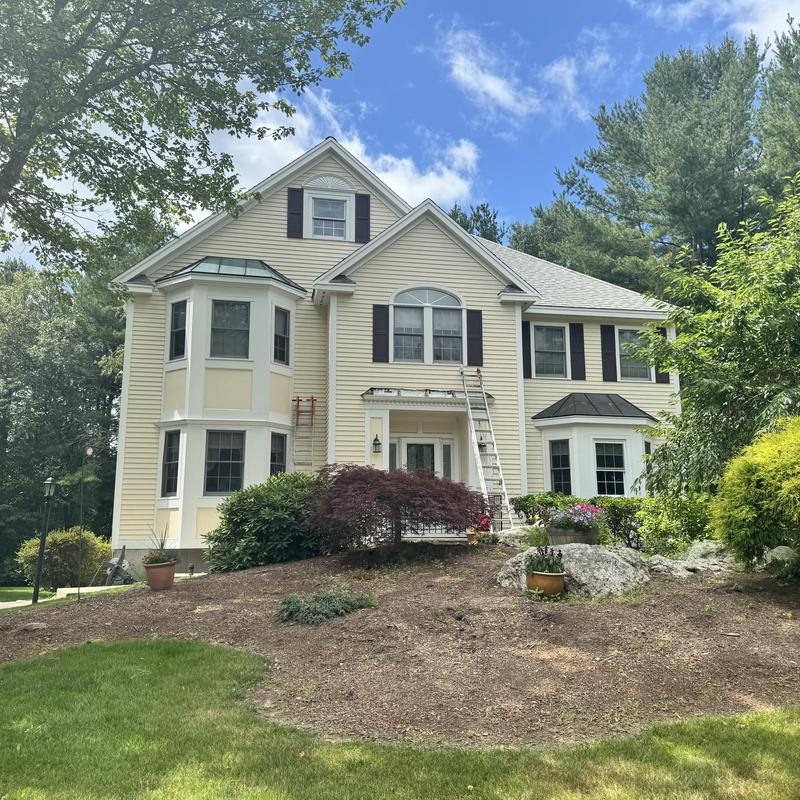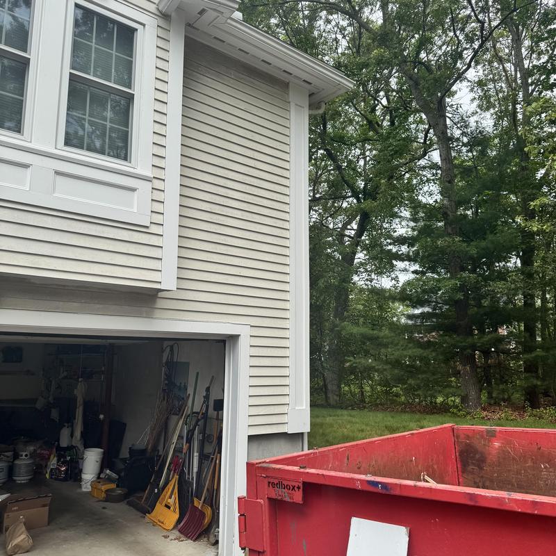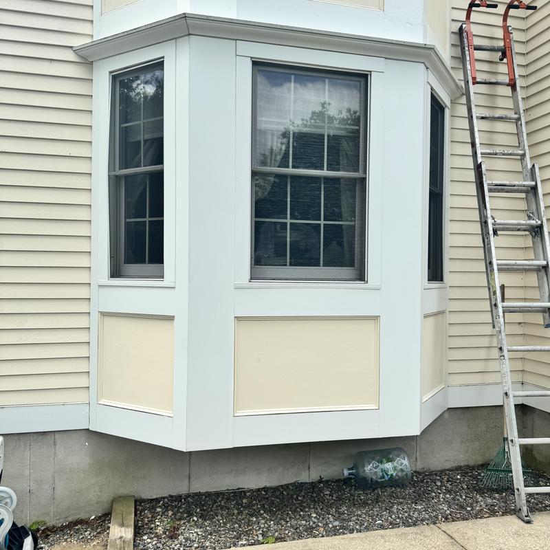 MC Design and Construction LLC removed all wood trim from windows, doors, and fascia boards in Andover, Massachusetts. The team installed new Azek PVC trim and will paint it to match the original color. New gutters will also be added to complete the exterior update.