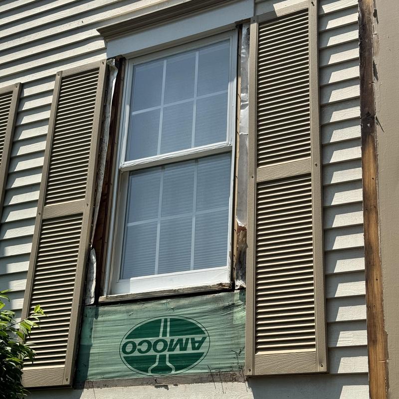 MC Design and Construction LLC removed damaged wood trims from a front elevation in Reading, Massachusetts. The team replaced rotted wood, installed a moisture barrier for protection, and applied new Azek PVC with matching paint for restoration and durability.