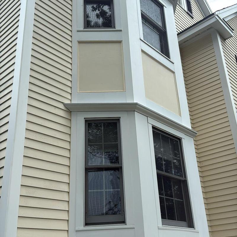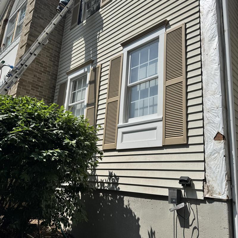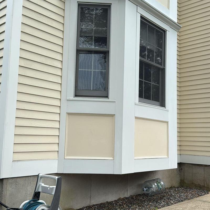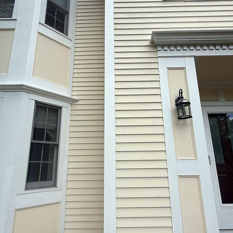 MC Design and Construction LLC installed new Azek trim around all windows and doors in Reading, Massachusetts. The team added PVC fascia boards, gutters, and downspouts. They will paint the trim after completing the installation to finish the exterior upgrade.