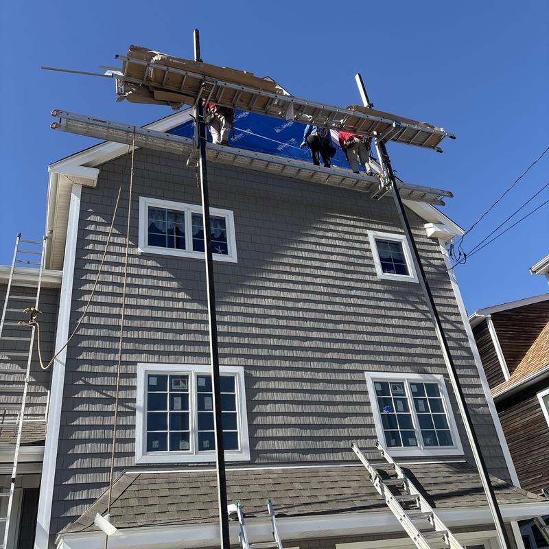 MC Design and Construction LLC completed framing and installed new windows at a residential property in Quincy, Massachusetts. The team is now adding siding to the exterior ahead of beginning interior work.