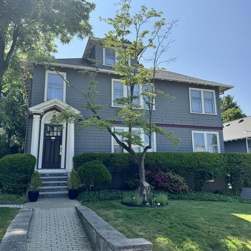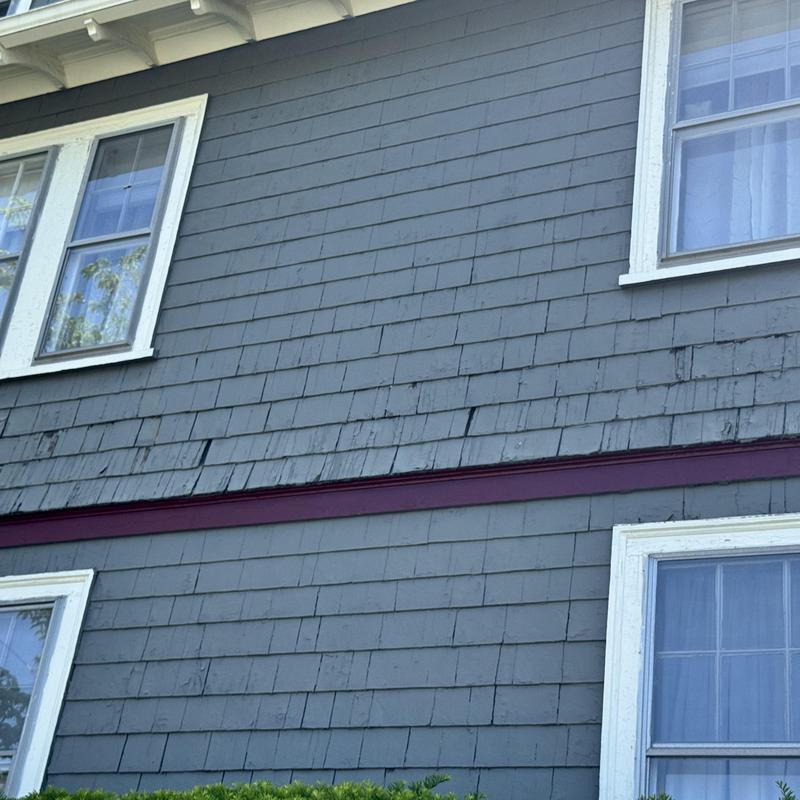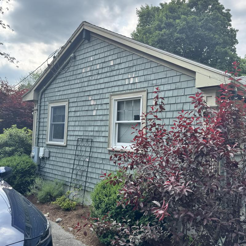 MC Design and Construction LLC replaced cedar shake shingles and painted the full exterior of a home in Newton, Massachusetts. The project included removing old roofing materials and applying new paint across all exterior surfaces to improve condition and weather resistance.