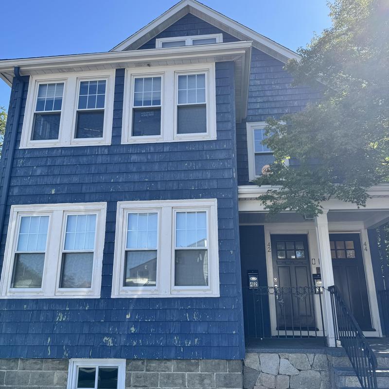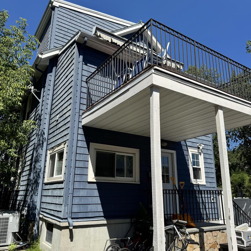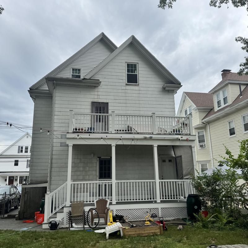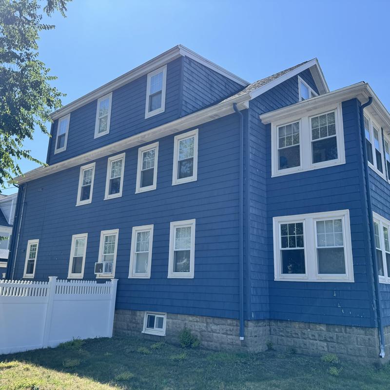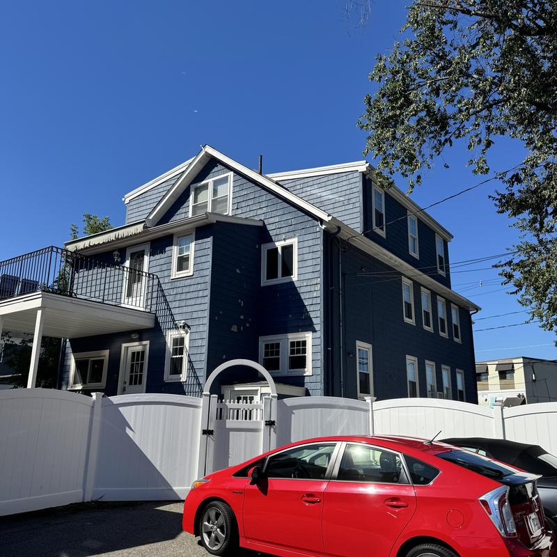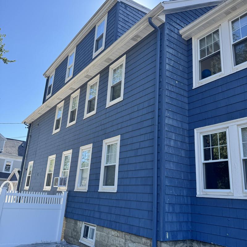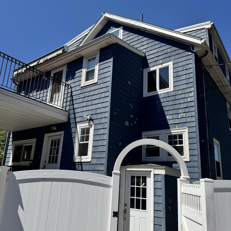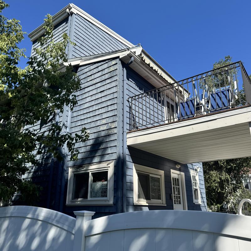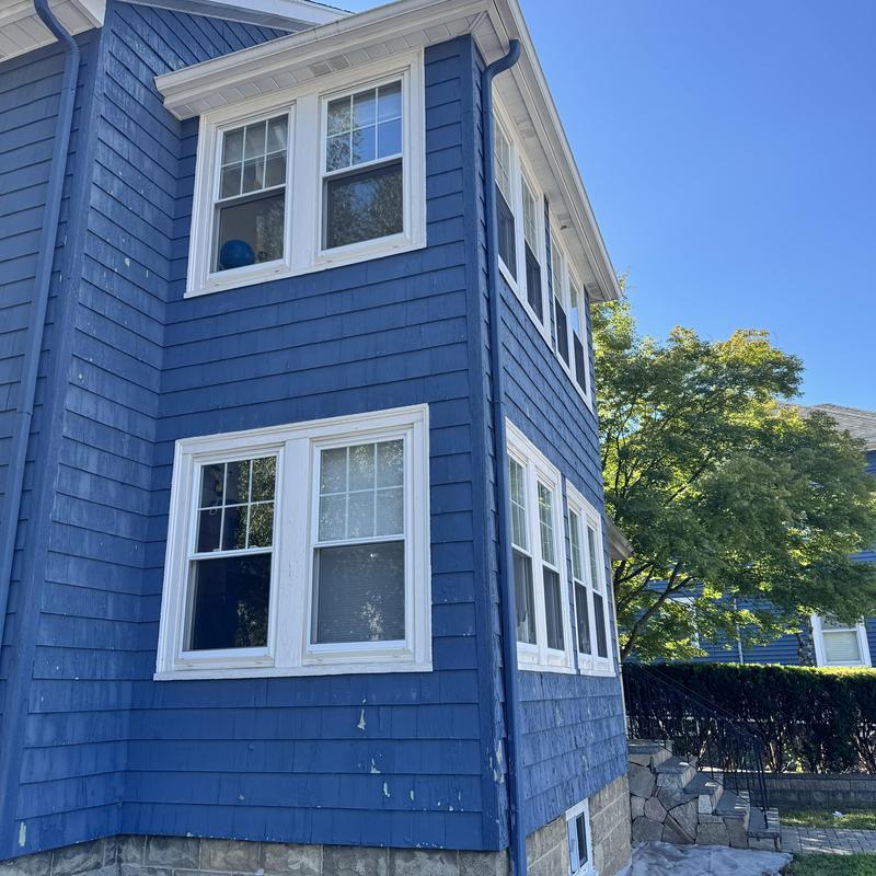 MC Design and Construction LLC replaced cedar shake shingles and painted the full exterior of a home in Newton, Massachusetts. The project included removing old roofing materials and applying new paint across all exterior surfaces to improve condition and weather resistance.