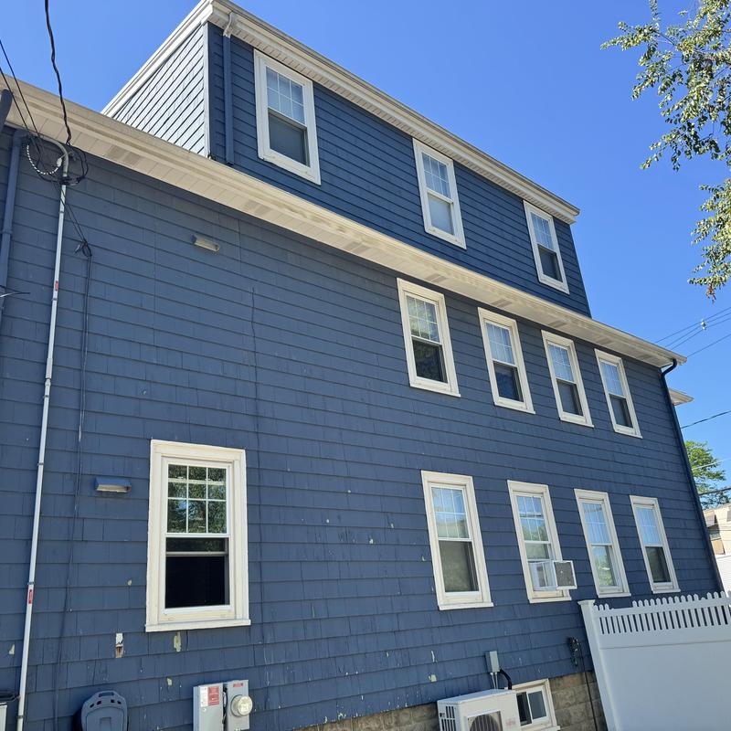 MC Design and Construction LLC installed new James Hardie siding and Azek PVC trims along with seamless gutters in Somerville, Massachusetts. The team replaced exterior materials to improve weather resistance and durability. This service included full siding replacement and trim installation to protect the home's structure.