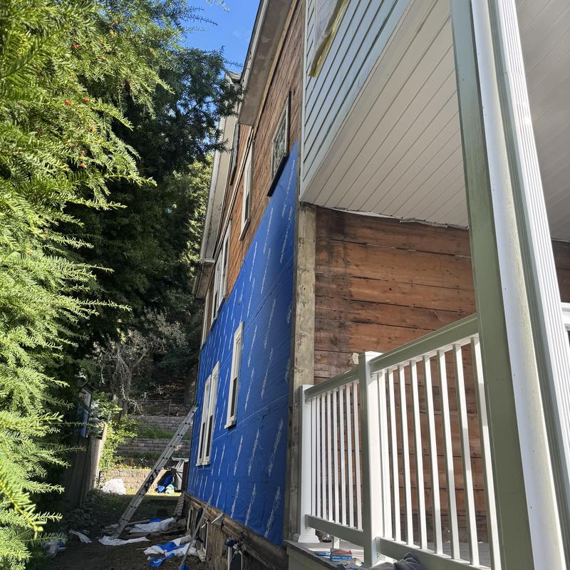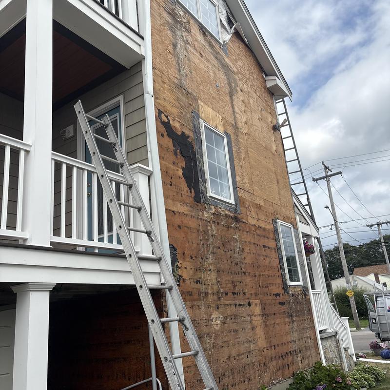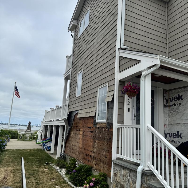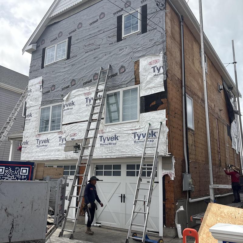 MC Design and Construction LLC completed framing and installed new windows at a residential property in Quincy, Massachusetts. The team is now adding siding to the exterior ahead of beginning interior work.