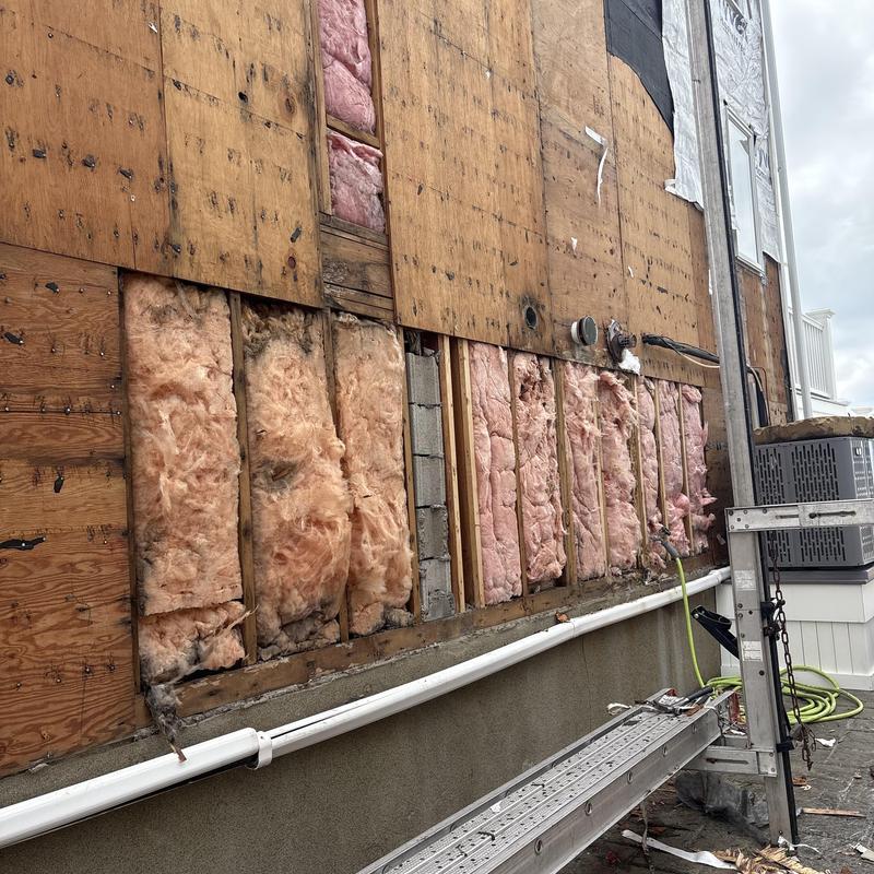 MC Design and Construction LLC removed exterior siding and found rotted boards in Randolph, Massachusetts. The team assessed the damage to support necessary structural repairs. This discovery highlights the importance of inspecting underlying materials during siding replacement or repair work.