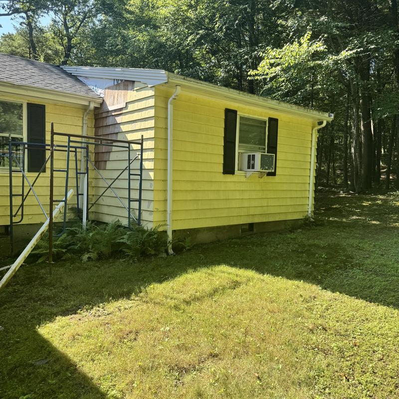 MC Design and Construction LLC replaced damaged cedar siding affected by wood rot and bird activity. The team installed new wood panels and painted them to match the existing exterior. This siding repair project was completed in Lexington, Massachusetts.