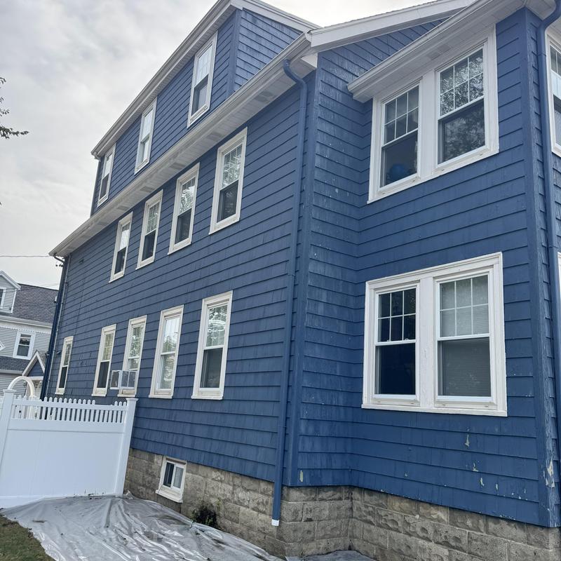MC Design and Construction LLC installed new Royal Estate vinyl siding with Azek PVC trims in Brockton, Massachusetts. The team replaced exterior materials to improve weather resistance and building performance using durable and low-maintenance products.